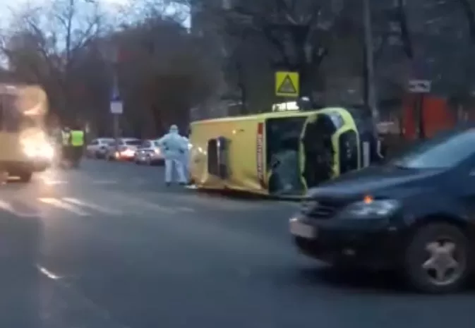 Не опять, а снова: на перекрестке улиц Братиславская и Гагарина перевернулась машина реанимации