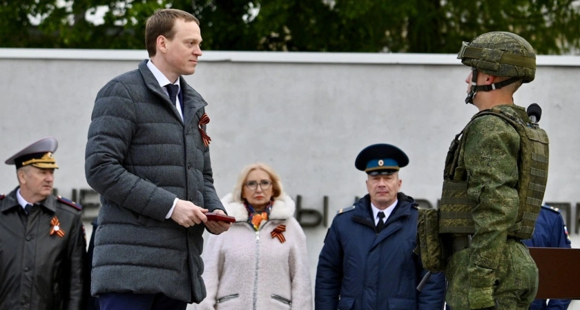 Павел Малков наградил студентов и офицеров десантного училища памятными знаками за участие в параде на Красной площади. В официальном сообщении регионального правительства отмечается, что церемония награждения прошла на площади Победы в Рязани.