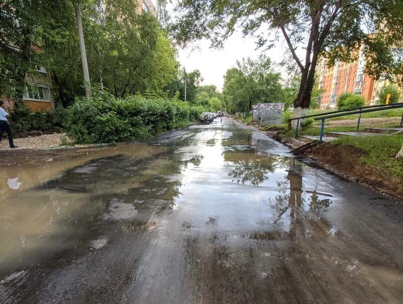 Сегодня, 22 июля, в рубрику “Народный контроль” пришла жалоба. На улице Черновицкой после укладки асфальта прошел дождь. Теперь аллея напоминает настоящий Севастополь - везде море. Читатель, приславший фотографии комментирует: