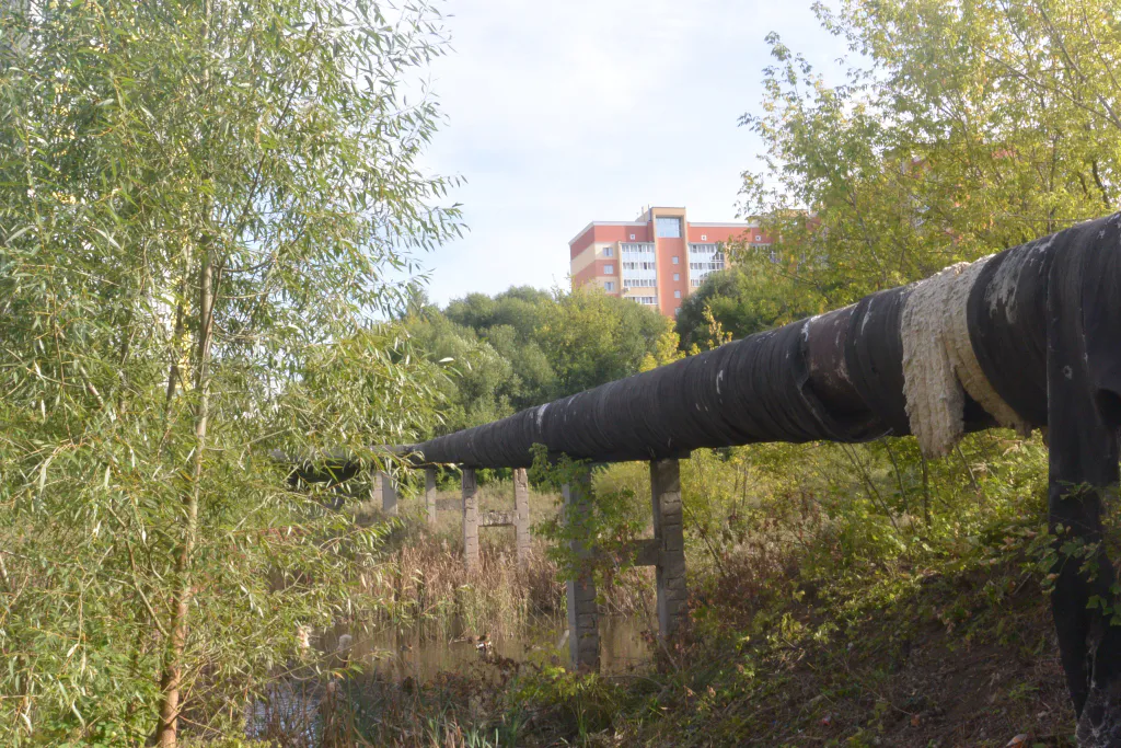 Огромная труба как дорога выглядит очень опасно - она возвышается над землей на приличном расстоянии, и упасть с нее наверняка будет очень неприятно, не говоря уже о вреде здоровью. Корреспондент попытался на личном опыте проверить, каково ходить по такому "мосту", но в итоге благоразумно передумал - смелости хватило только на пару шагов по трубе, двигаться дальше стало банально страшно.