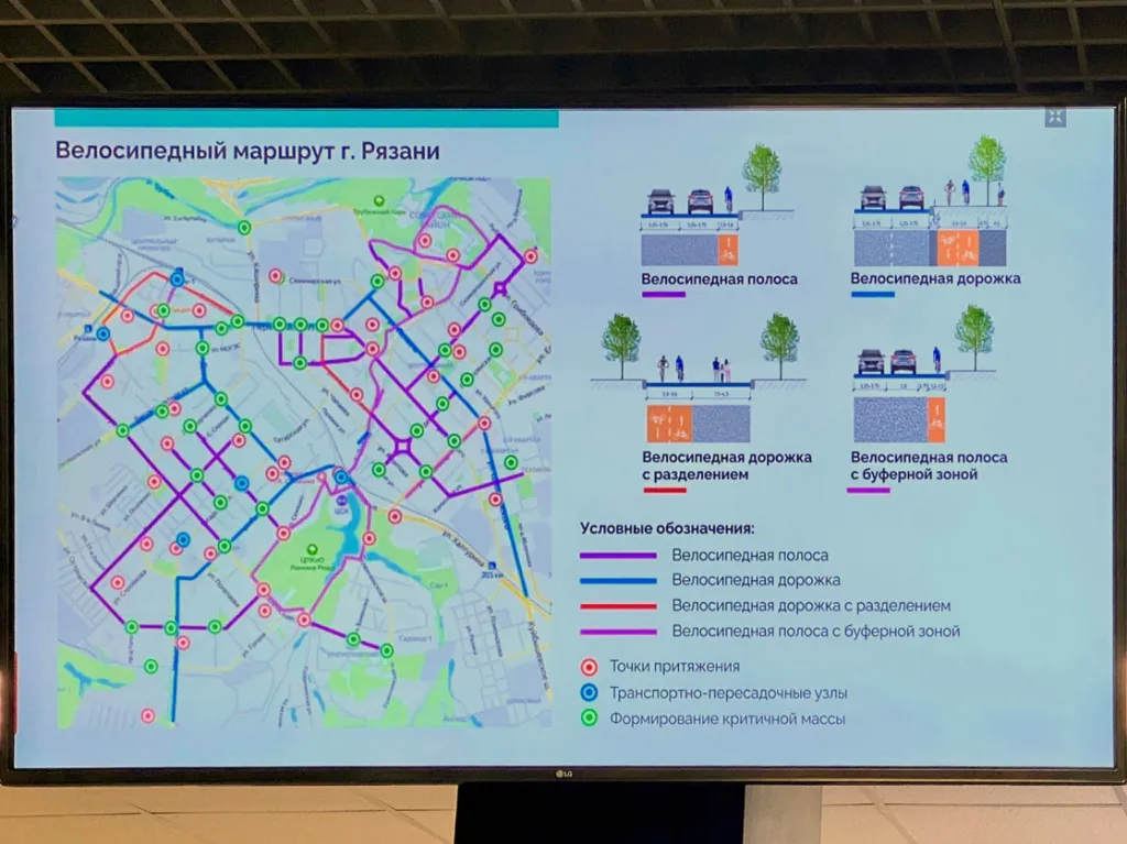 Сходил на обсуждение концепции создания сети велодорожек в Рязани. Что понравилось? Серьёзное представительство: заместитель председателя правительства области, глава администрации города, главный архитектор, начальник управления экономики и цифрового развития – есть надежда, что проект дойдёт до реализации.