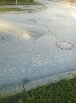 - Так глубина уже сантиметров 15-20. Вчера колесом попал в эту яму, бампером чиркнул. Этот провал уже месяц там, но глубина начала расти последние две недели.