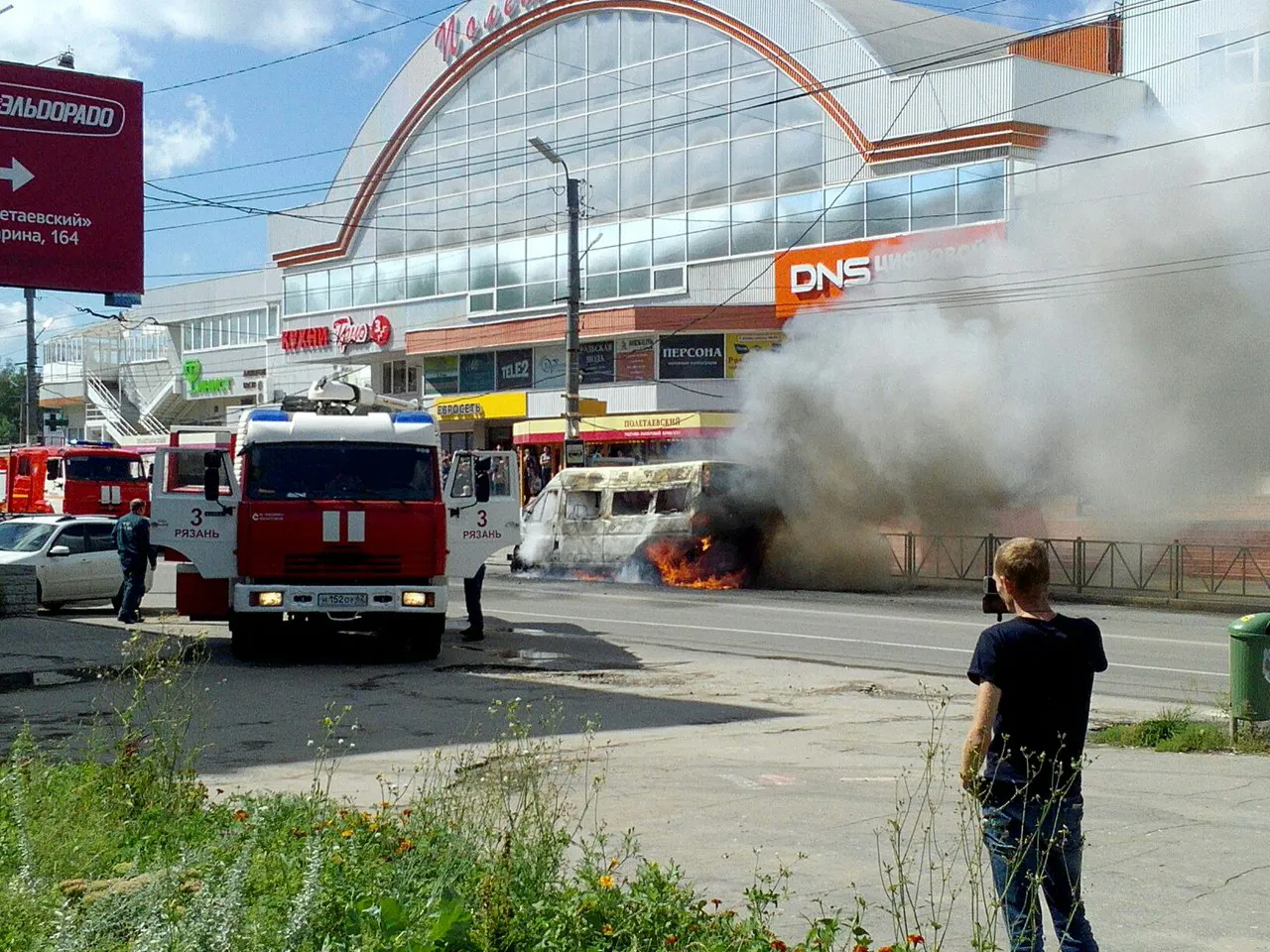 - Я шла и услышала хлопок. Смотрю, прямо на остановке горит маршрутка. - рассказывает женщина. - Вокруг все оцепили, машина МЧС уже на месте.