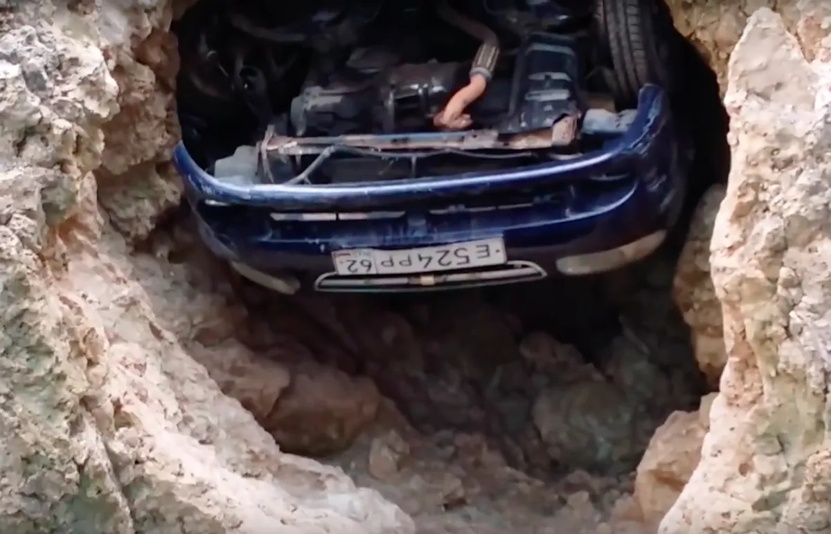 В сети появилось видео о рязанском автомобиле застрявшем в крымской пещере