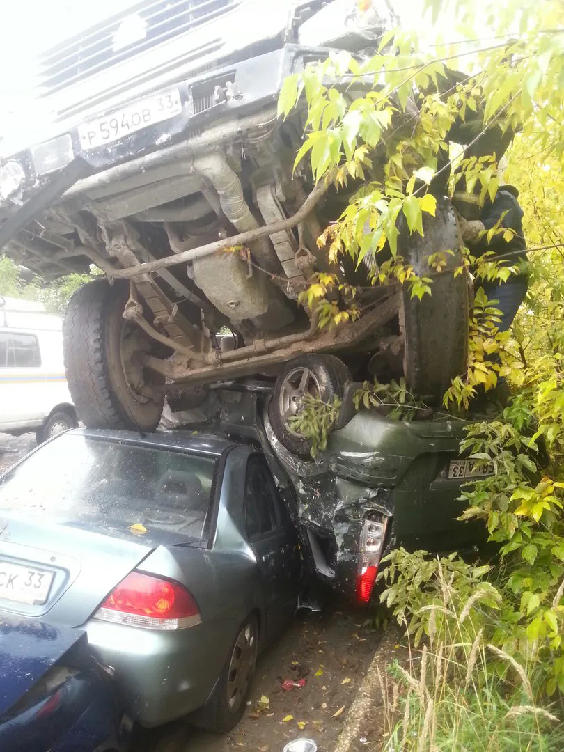 Очевидцы констатируют, что автомобили, первыми попавшие под удар находятся в плачевном состоянии. «Форд» в буквальном смысле превратился в лепешку, следующий за ним «Мицубиси» тоже врядли подлежит восстановлению.