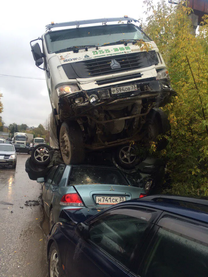 Бетономешалка "сгребла" 12 автомобилей во Владимире