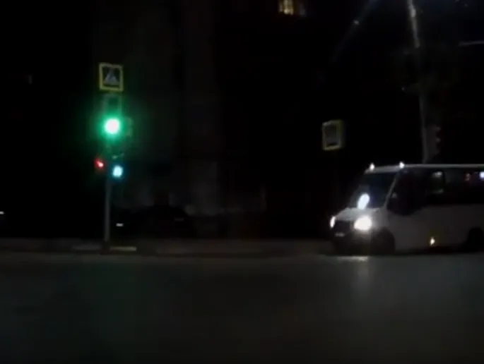 Маршрутка с людьми едет на красный в центре Рязани