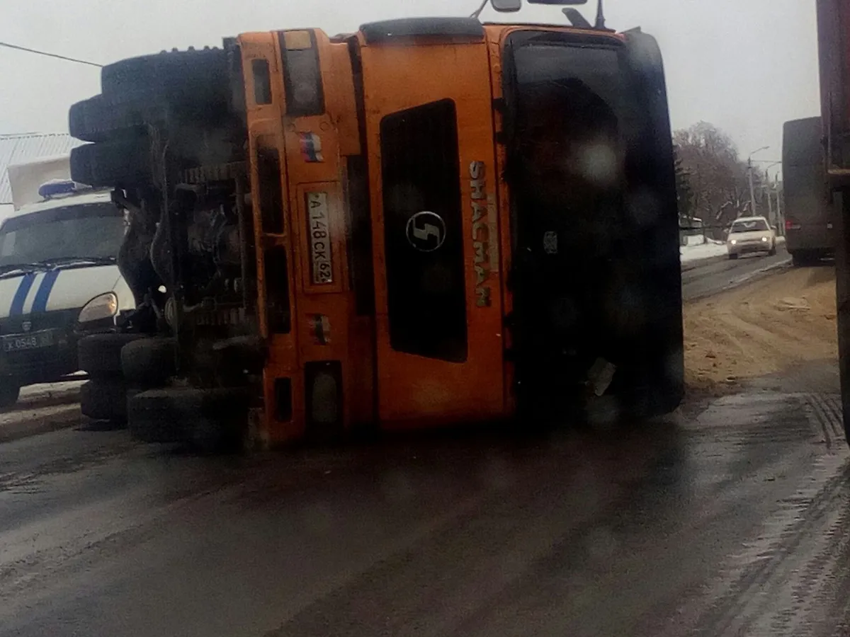 Неподалеку от села Гребнево в Старожиловском районе перевернулся грузовик с песком. История из разряда "сапожник без сапог" - вез песок, чтобы посыпать дорогу другим, а у самого машину повело.