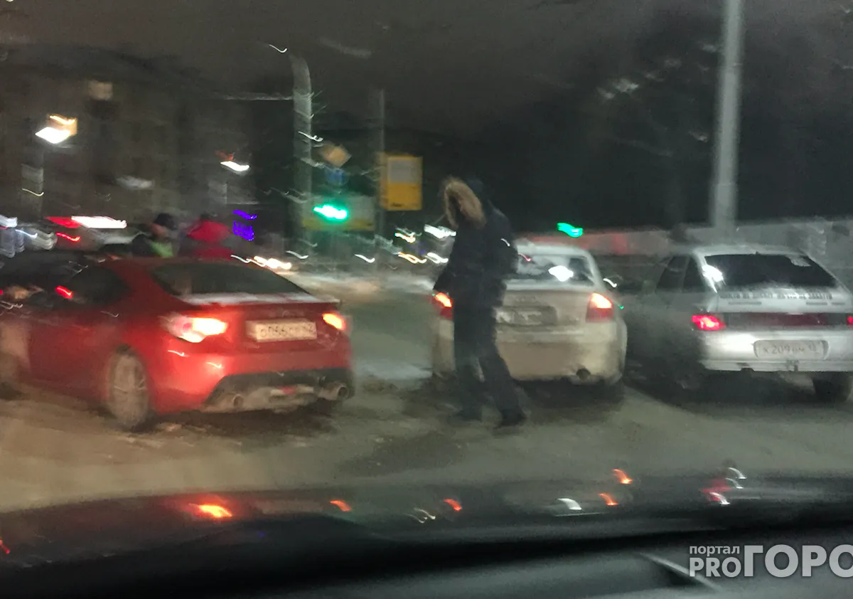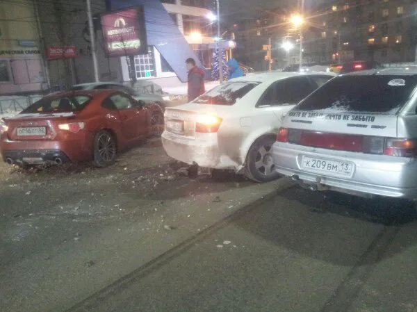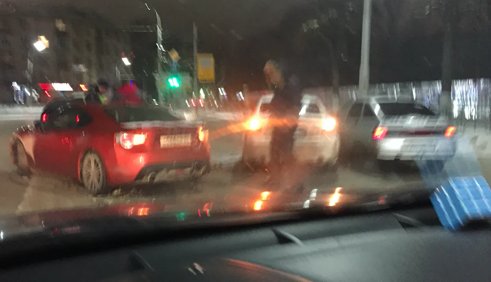 Тройная авария на пустой дороге в районе перекрестка Дзержинского и Высоковольтной
