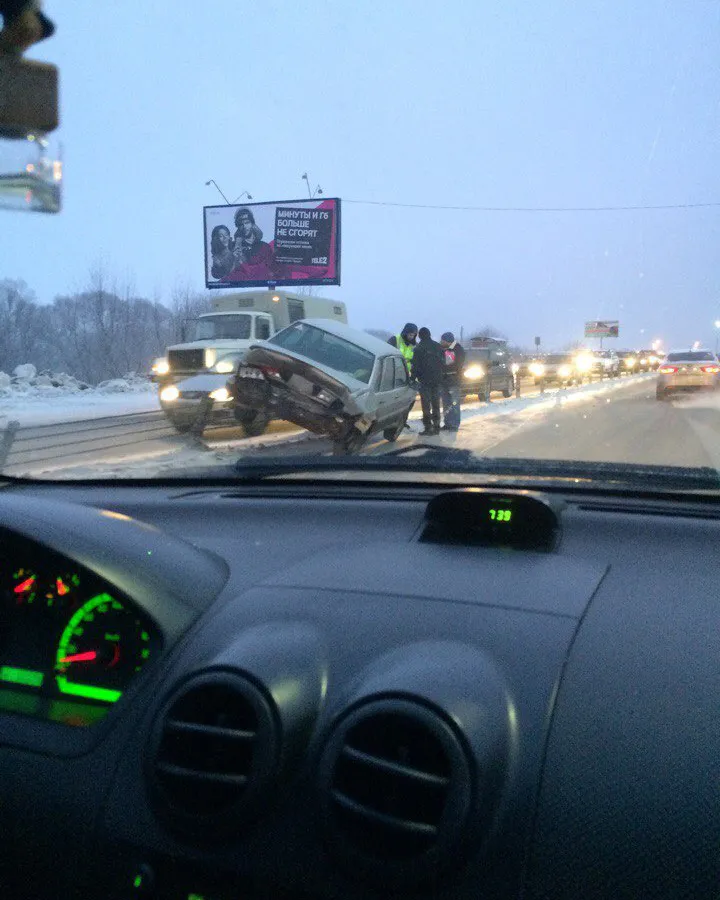 По словам очевидцев, «Нива Шевроле» врезалась в ВАЗ-2114, после чего «четырнадцатая» повисла на тросовом ограждении.
