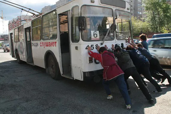 В Рязани пенсионеры толкали заглохший троллейбус