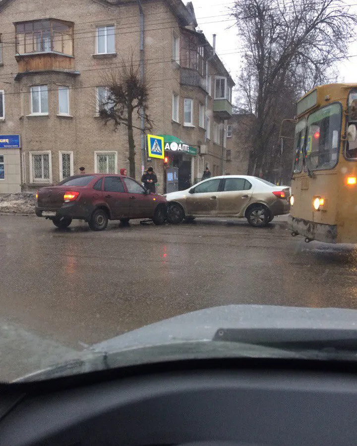 Во вторник, 21 февраля, в Приокском, на пересечение Октябрьской и Бронной, произошло ДТП. Два автомобиля столкнулись и полностью перекрыли движение на одной полосе.