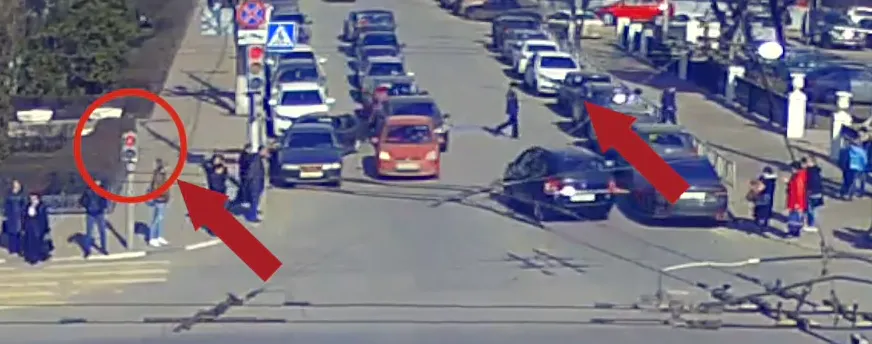 На видео, несколько человек решили поскорее перейти дорогу и пошли на запрещающий свет. Автомобиль перед пешеходами сумел вовремя остановиться и был вынужден пропустить их.