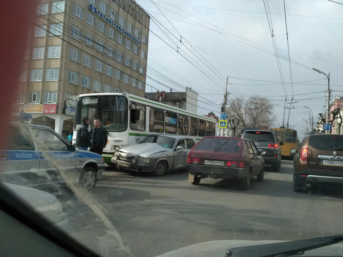 В среду, 12 апреля, на Есенина, напротив театра кукол,  произошло ДТП. Столкнулись автобус и Волга. Об этом сообщила очевидица.