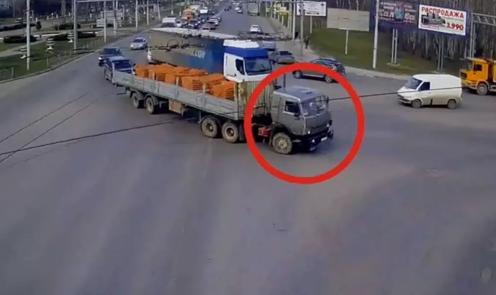 На видео, грузовик поворачивает  с Московского шоссе в сторону Приокского.  В этот момент часть кирпичей упали на проезжую часть.