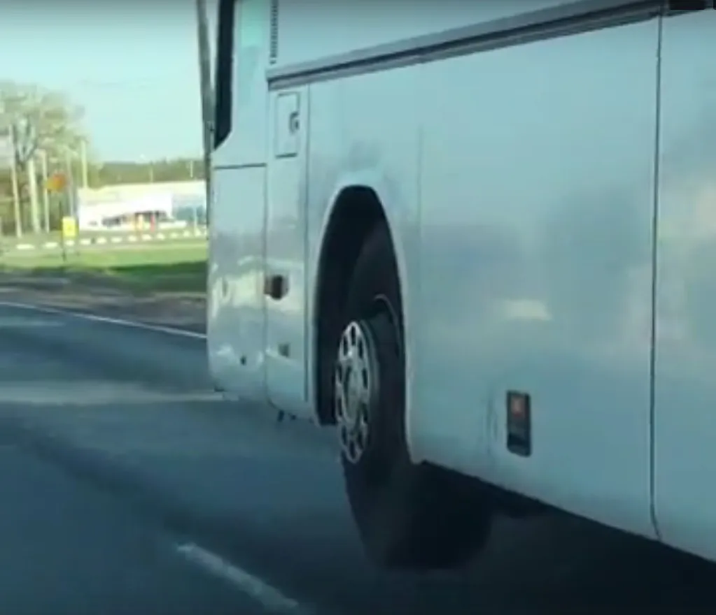 "Сейчас по дороге в Рязань увидел, как ехал перегруженный автобус. При этом переднее колесо с водительской стороны висело в воздухе. Как такое могут допускать при осуществлении пассажирских перевозок. Автобус 960 Москва-Рязань", - написал автор поста.