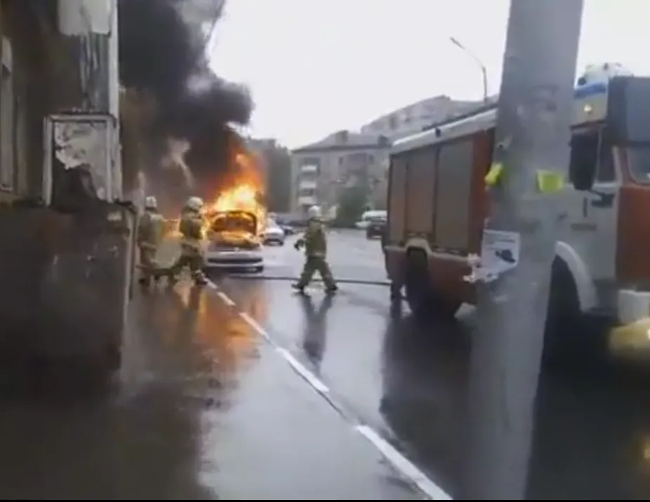 Загоревшийся автомобиль на Свободе: огонь перекинулся в салон за считанные секунды
