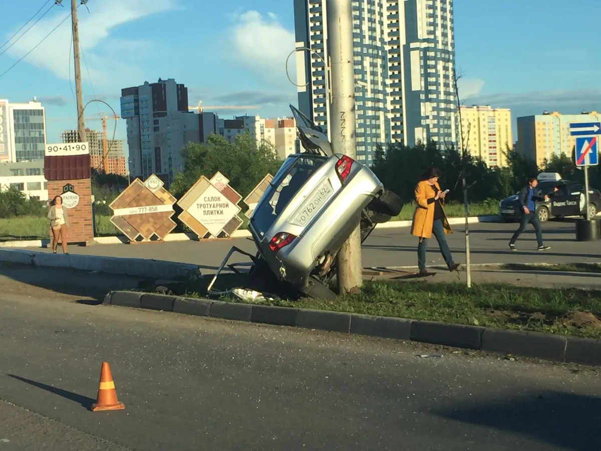 ДТП на Московском шоссе - одна из машин оказалась нанизанной на столб
