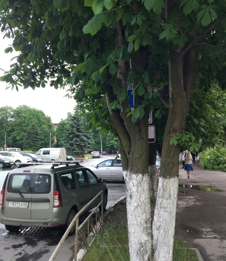 На Мичурина знак платной парковки спрятан за деревьями