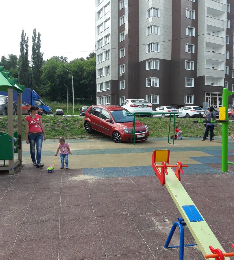 Женщина перепутала педали!! Ссамое ужасное, что чуть ребенок не погиб. Успела отпрыгнуть в последнюю минуту. Ул.Большая 102.  Нужно обносить забором детские площадки!! И запрещать парковаться так!!!