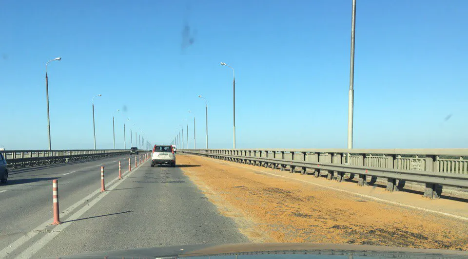 По словам рязанца, движение по мосту затруднено из-за разлитого масла.