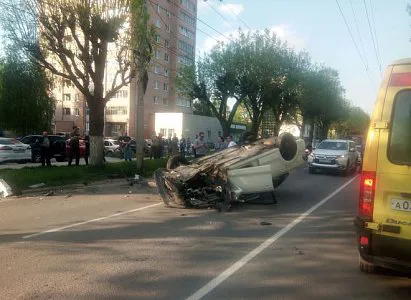 Видео: на улице Есенина перевернулась легковушка