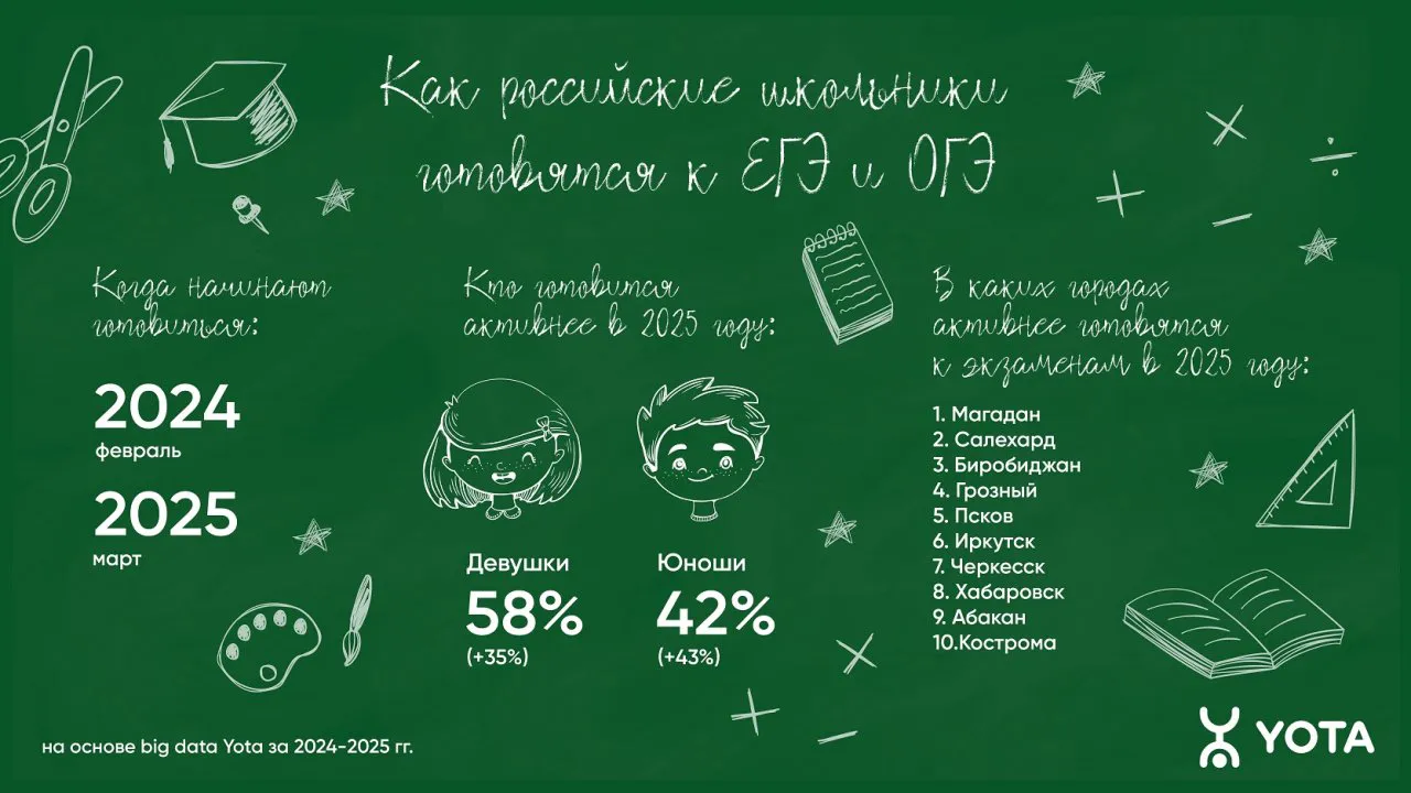 Активная подготовка к ЕГЭ и ОГЭ у школьников в Рязани в 2025 году сдвинулась на март. При этом все больше учеников готовятся онлайн — число пользователей сервисов и приложений для подготовки к обязательным экзаменам с января по первые две недели мая выросло на 25% относительно прошлого года, выяснили в компании Yota на основе обезличенных данных абонентов.