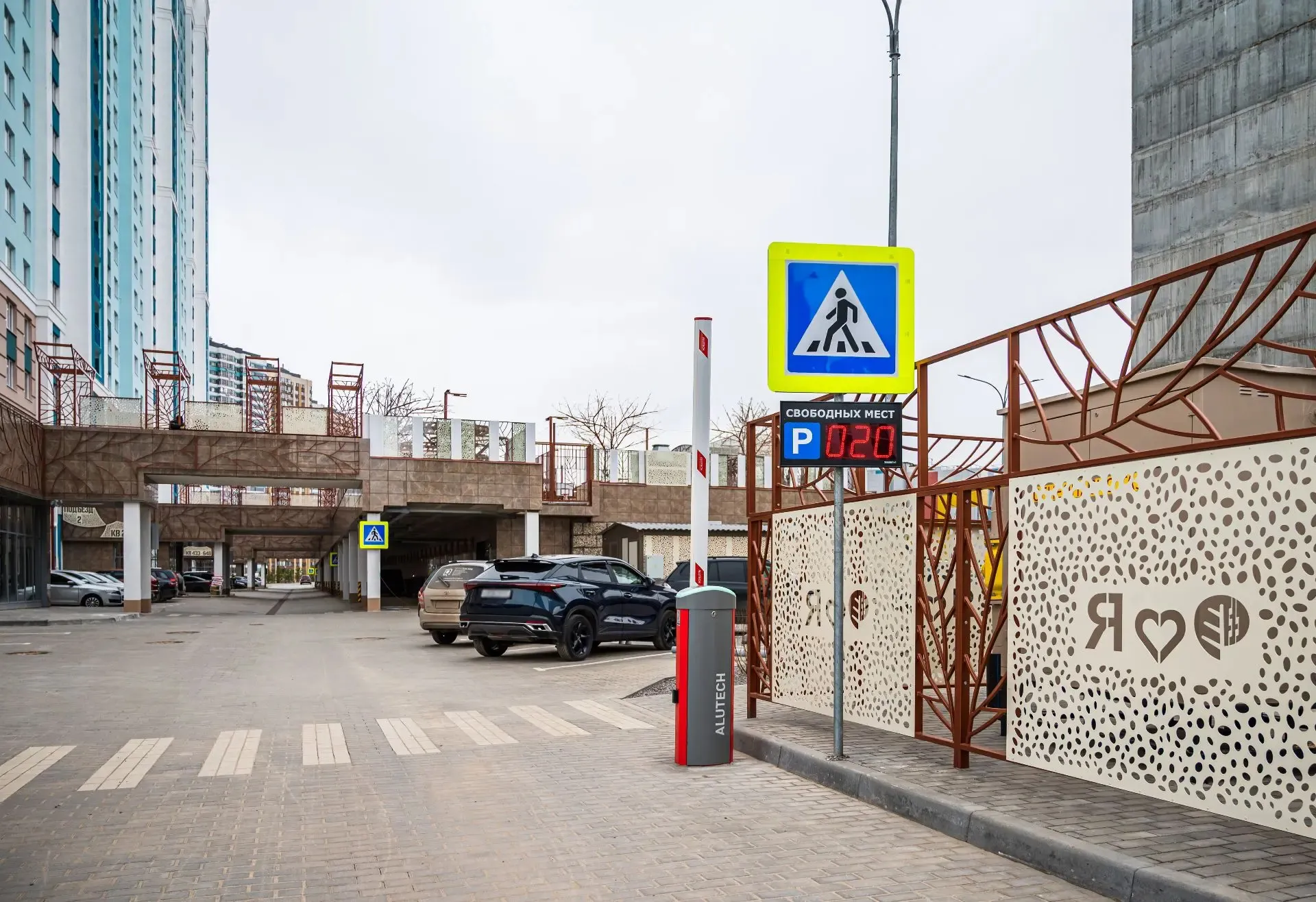 - Где и сколько свободных мест есть около дома, отображается на двух информационных табло. Они расположены на въезде на территорию ЖК .