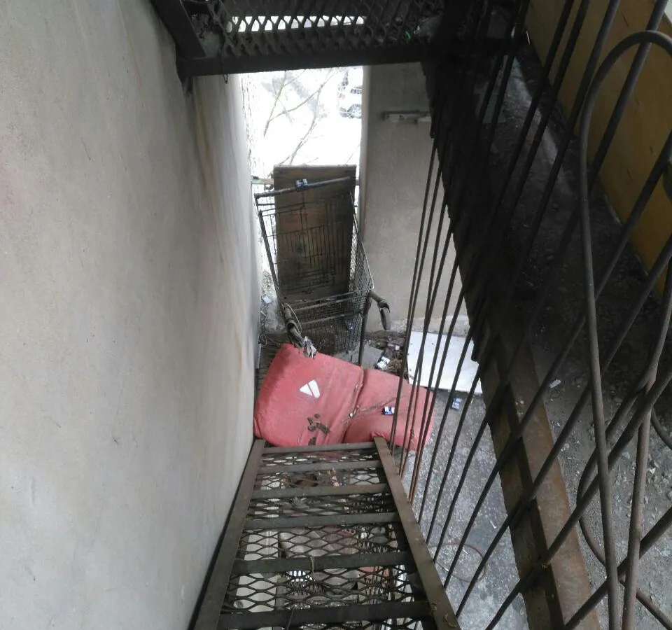 Аналогичная ситуация сложилась и в доме №84 к.1 на улице Стройкова. Пожарные выходы открыты, но лестницы захламлены мебелью и мусором. Спускаясь по ним, особенно в спешке, можно серьезно травмироваться. Но в данной ситуации это вина жильцов, которые решили устроить в собственном доме свалку.