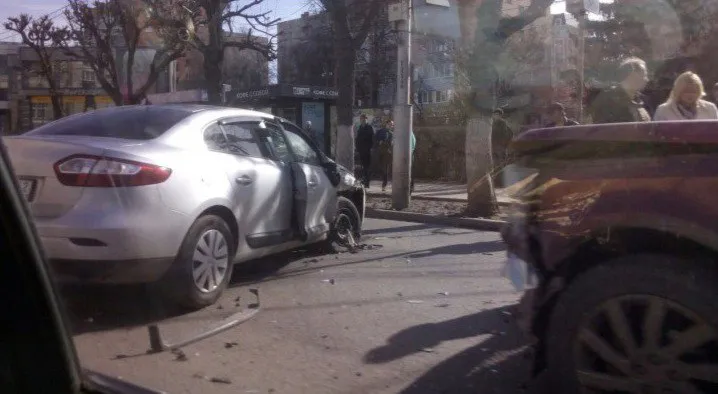Появилось видео момента столкновения внедорожника Land Rover и седаном Renault Fluence на перекрестке улиц Ленина и Введенской.