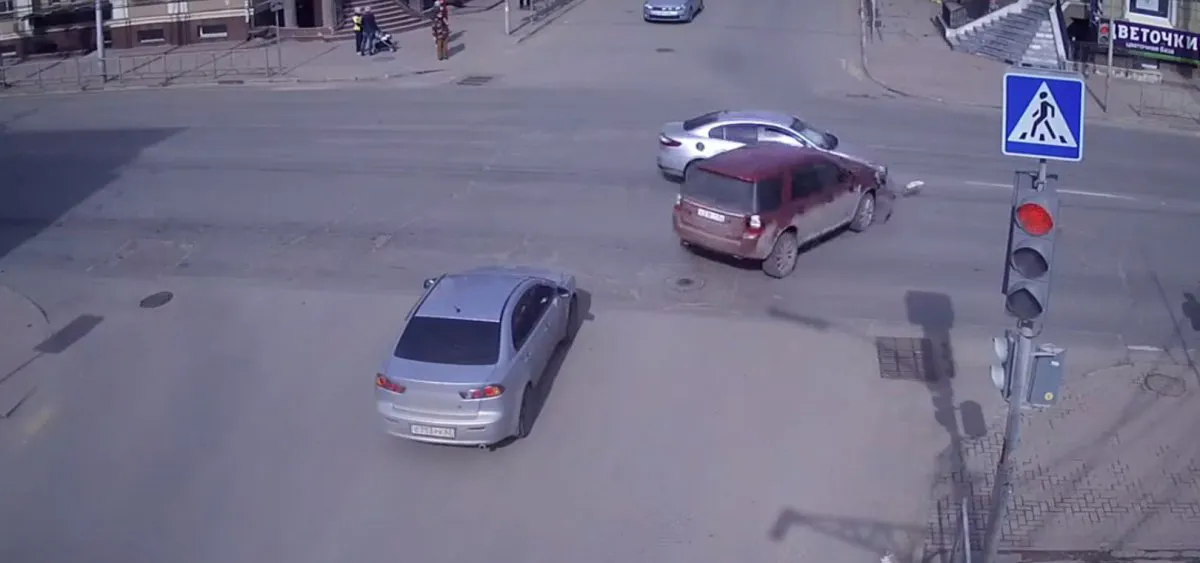 Из видео видно, что водитель "Ленд Ровера" грубо нарушил ПДД и допустил выезд на перекресток на запрещающий сигнал светофора, чем спровоцировал ДТП.