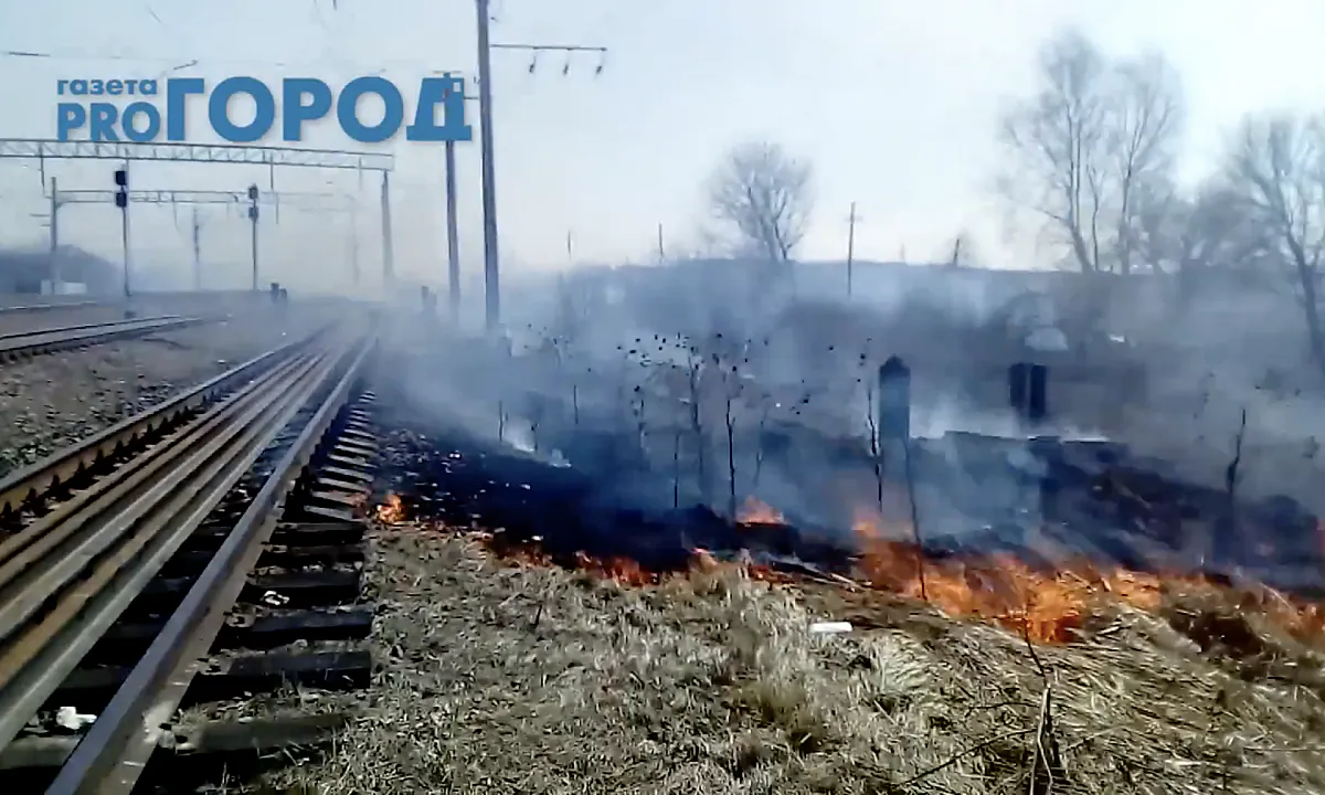 Пал травы в деревне Листвянка - огонь дошел до ЖД путей