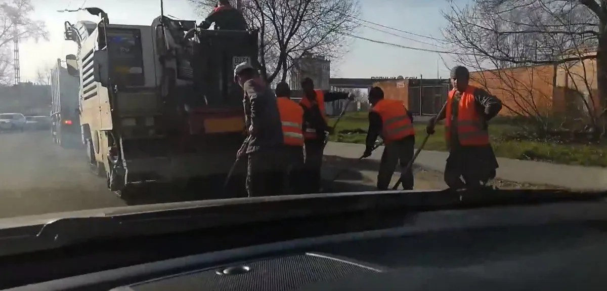 Ямочный ремонт. Именно в час-пик им нужно срезать асфальт. Время - 5:29, - комментирует автор видео.