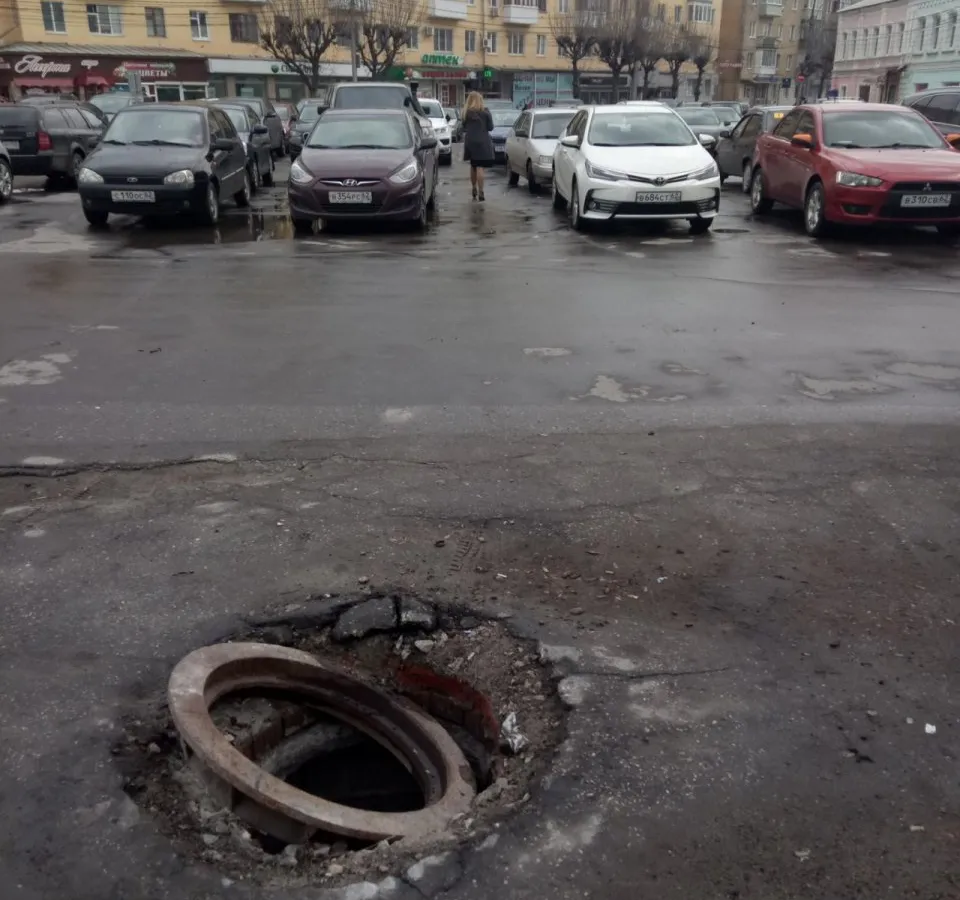 Платная парковка 119, площадь Ленина. Провал в колодец гарантирован. Обратились в ДПС, всё зафиксировано. Спасибо, дорогие, что так работаете за наши деньги, начиная с водоканала заканчивая парковками, которые берут за это деньги, не обеспечивая безопасность, не нашим авто и даже не нашим детям (при мне две девочки чуть не угодили в колодец). Про обычных людей и тёмное время суток, молчу. Надеемся на правду и справедливость!