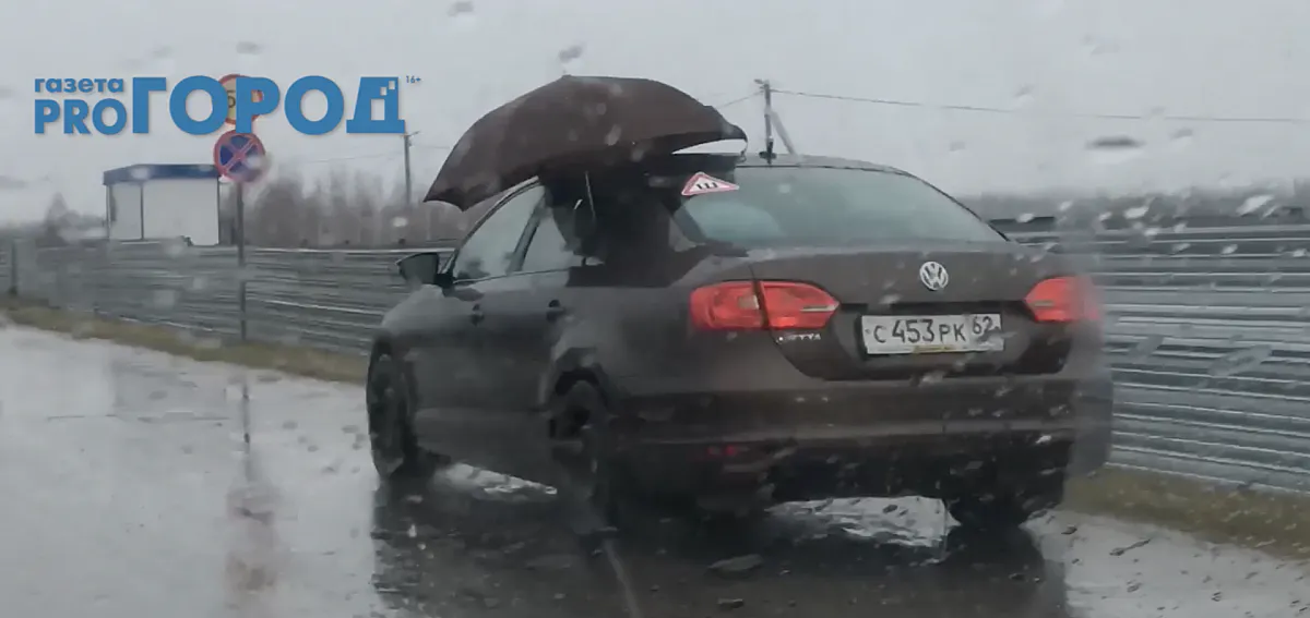 На трассе из посёлка Варские в Рязань ехала иномарка под зонтом. Мы рассматриваем несколько вариантов!