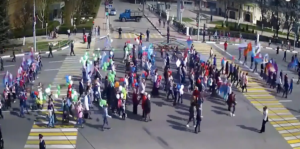 Как выглядела первомайская демонстрация с дорожных камер - видео