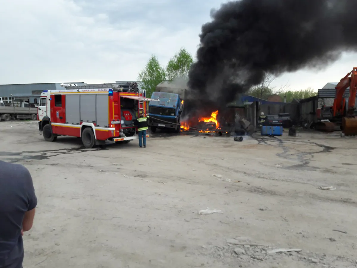 В пять часов вечера на пульт дежурного поступило сообщение о пожаре на улице Черновицкой. Огнем были охвачены два автомобиля. На снимке, сделанным очевидцем, видно, что от огня пострадали грузовые машины. Сообщается, что есть пострадавшие.