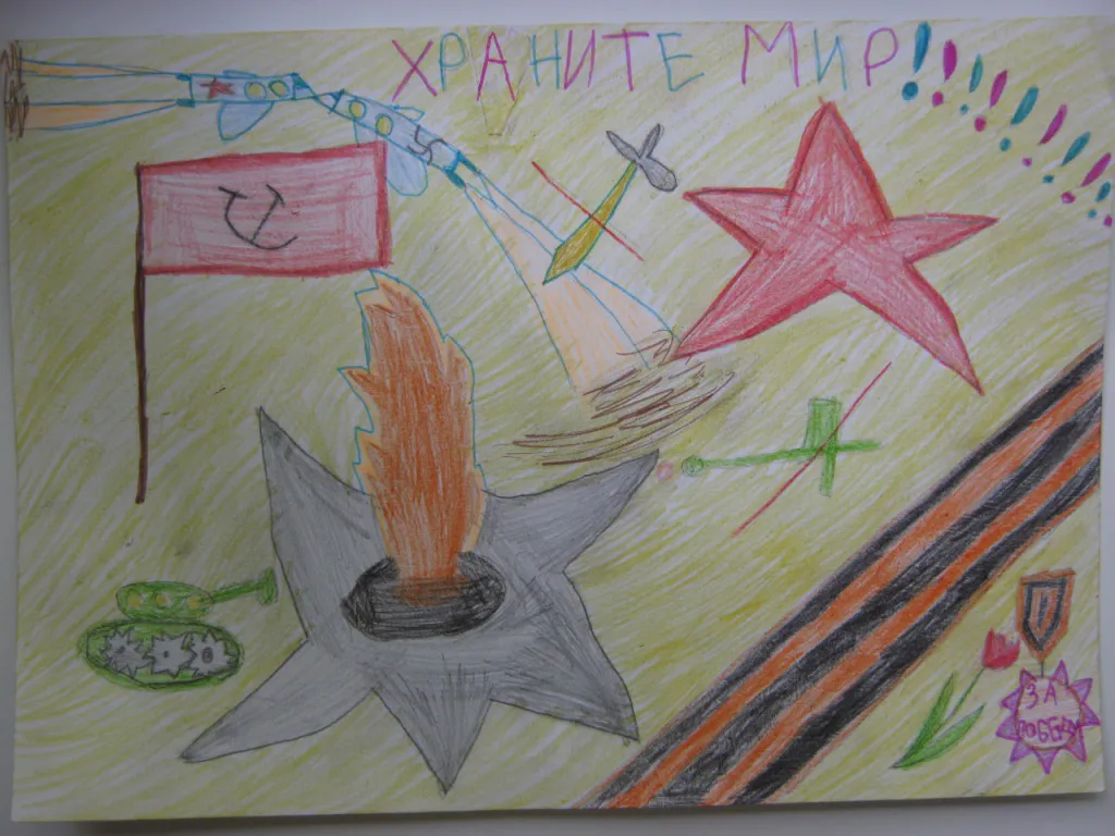 И, конечно же, во время работы над рисунком вы можете рассказать ребенку о Великой Отечественной войне и подвиге наших предков.