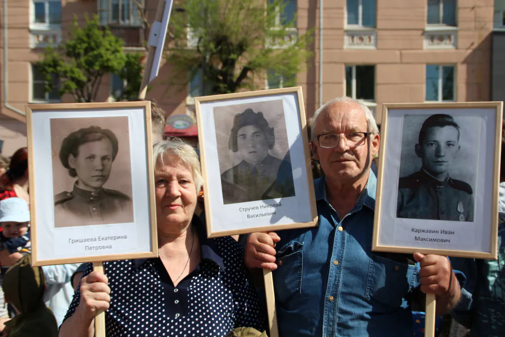 В этот день жители города присоеднились к "Бессмертному полку". Семьи