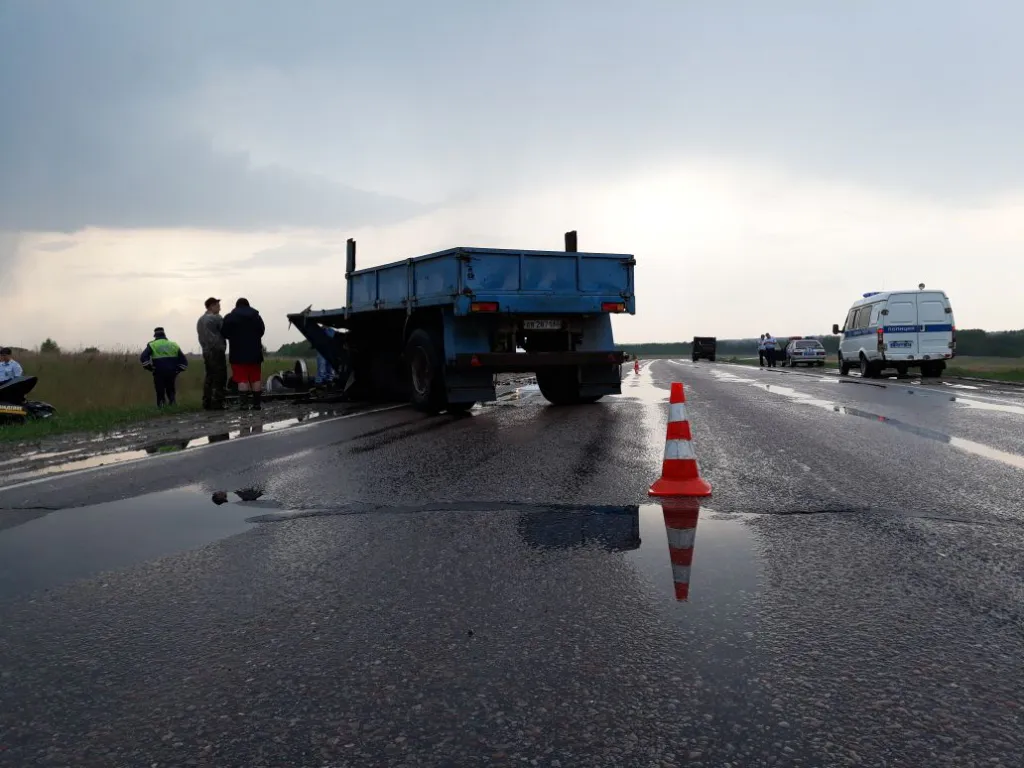 Смертельное ДТП Под Шацком - прицеп оторвался от "Камаза" и улетел в "Ладу Гранту"