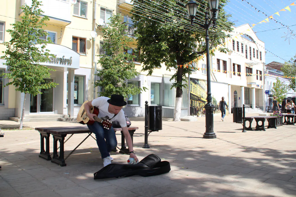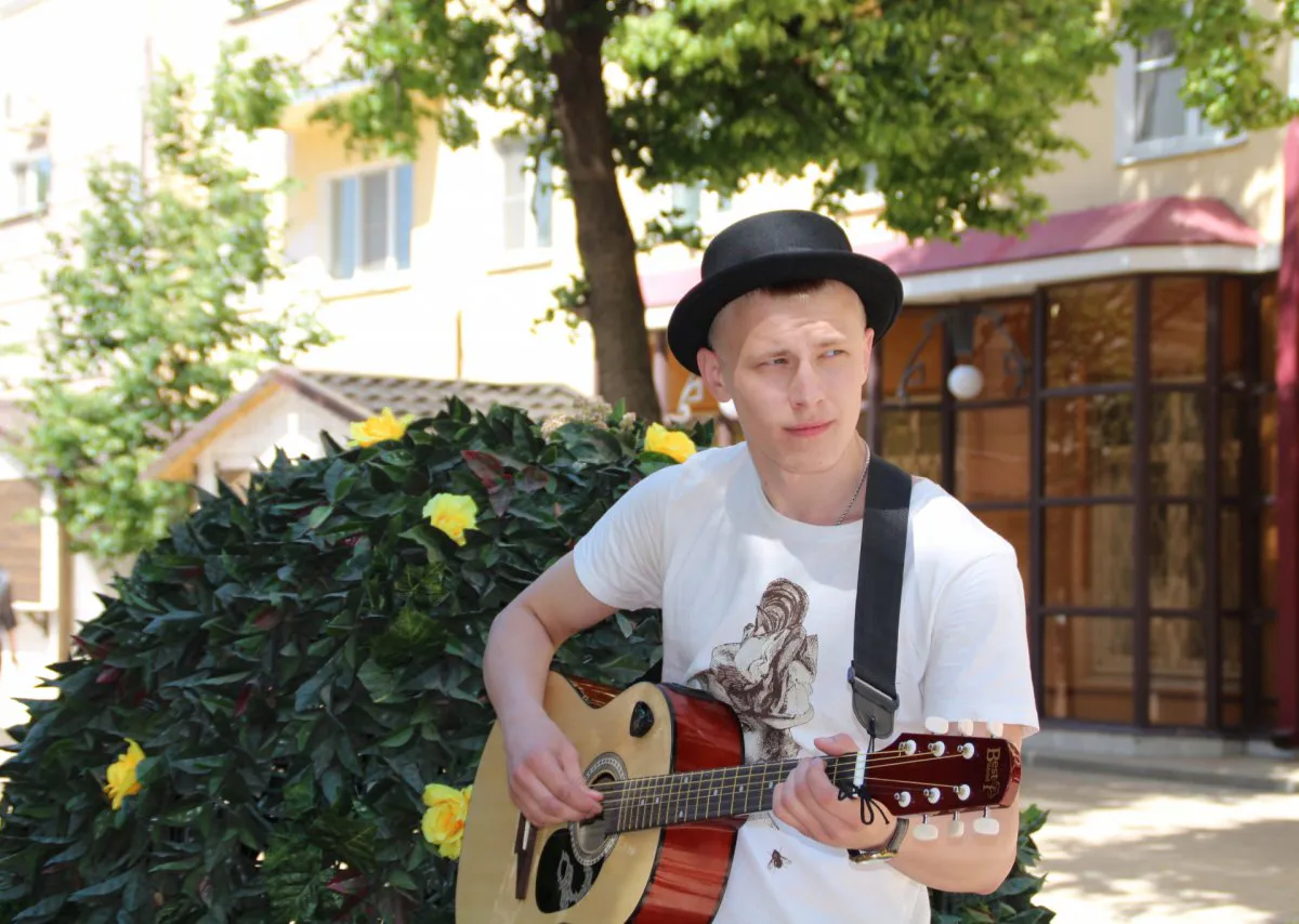 Дмитрий Кондрашов - студент, уличный музыкант. По вечерам и выходным играет на гитаре или баяне на Почтовой.