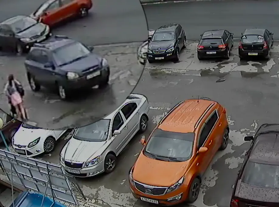 Несущемуся на высокой скорости легковому автомобилю марки Тойота (по всей видимости) преградил путь корейский хэтчбек, водитель которого решил повернуть во двор не уступив дорогу "японцу". А в это время, на обочине разворачивался ничего не подозревающий Рено Меган. Тойота, после неприятной встречи с хэтчбеком, резко изменила курс и финишировала, уперевшись в автомобиль французского производства. Дружная компания из Тойтоты и Рено прилетела в четвертого участника ДТП - корейский внедорожник, стоявший на парковке.