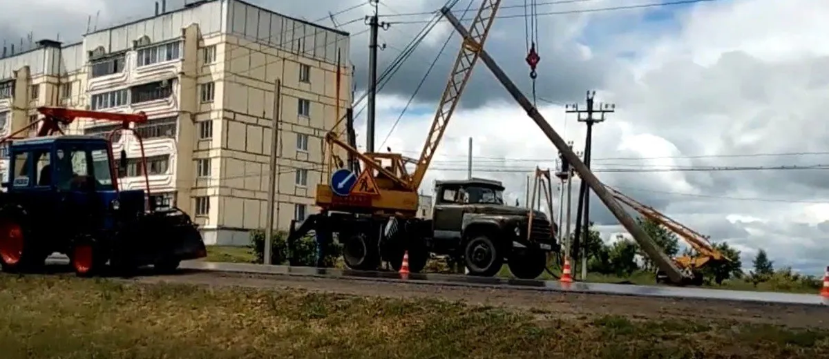 В посёлке Октябрьский Рязанской области из-за замены столбов отключили свет. Видео