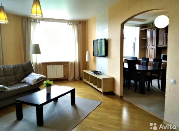 Ещё одно предложение из Солотчи — двухкомнатная квартира на Дачной. Преимущество предложения — прекрасное окружение: имеется собственный пляж, закрытая территория охраняется. Квартира площадью 96 кв. метров выставлена на продажу вместе с бытовой техникой и кое-какой мебелью за 14 млн. рублей.