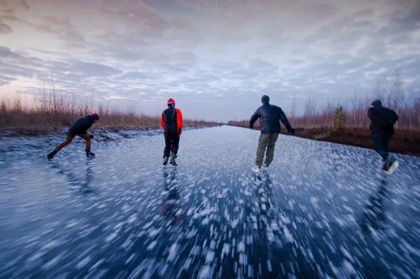 «Чтобы получить новые ощущения оказывается совсем не обязательно ехать за рубеж. Достаточно отъехать на границу Московской и Рязанской области на обычную канаву… Главное правильно подобрать погоду. Этот ледяной проспект тянется несколько километров», — говорится в описании фотографии, сделанной осенью 2014 года во время похода на коньках.