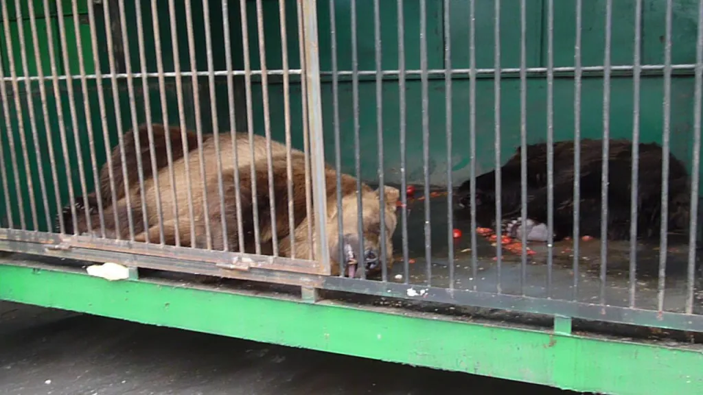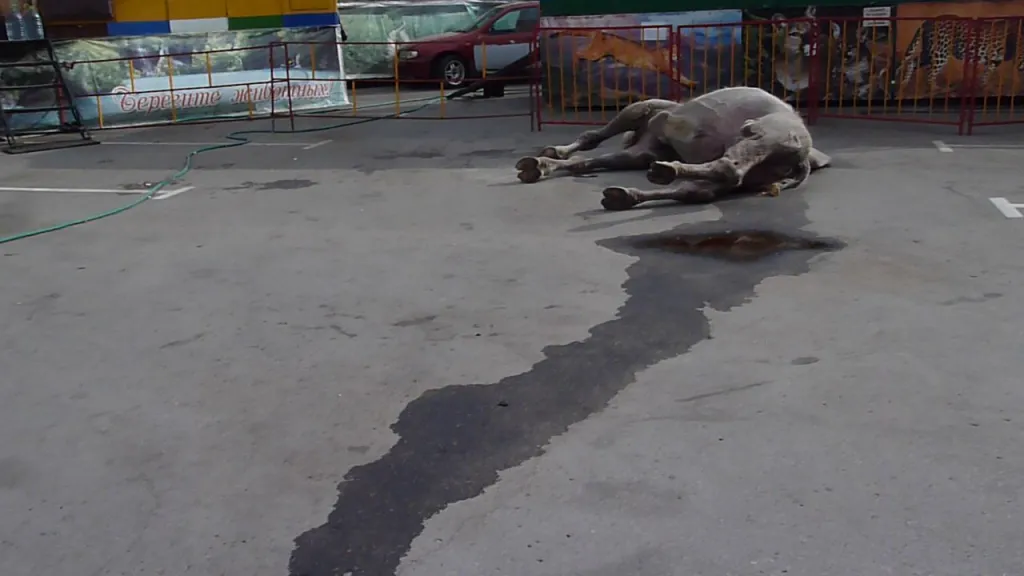 На днях местные зоозащитники проверили этот передвижной зверинец и обнаружили медведя, лежащего в собственных испражнениях, полумертвого верблюда, слепого леопарда. Все звери и птицы томятся в тесных клетках, изнывают от жары и питаются чем попало. Об этом написали десятки крупных федеральных изданий.