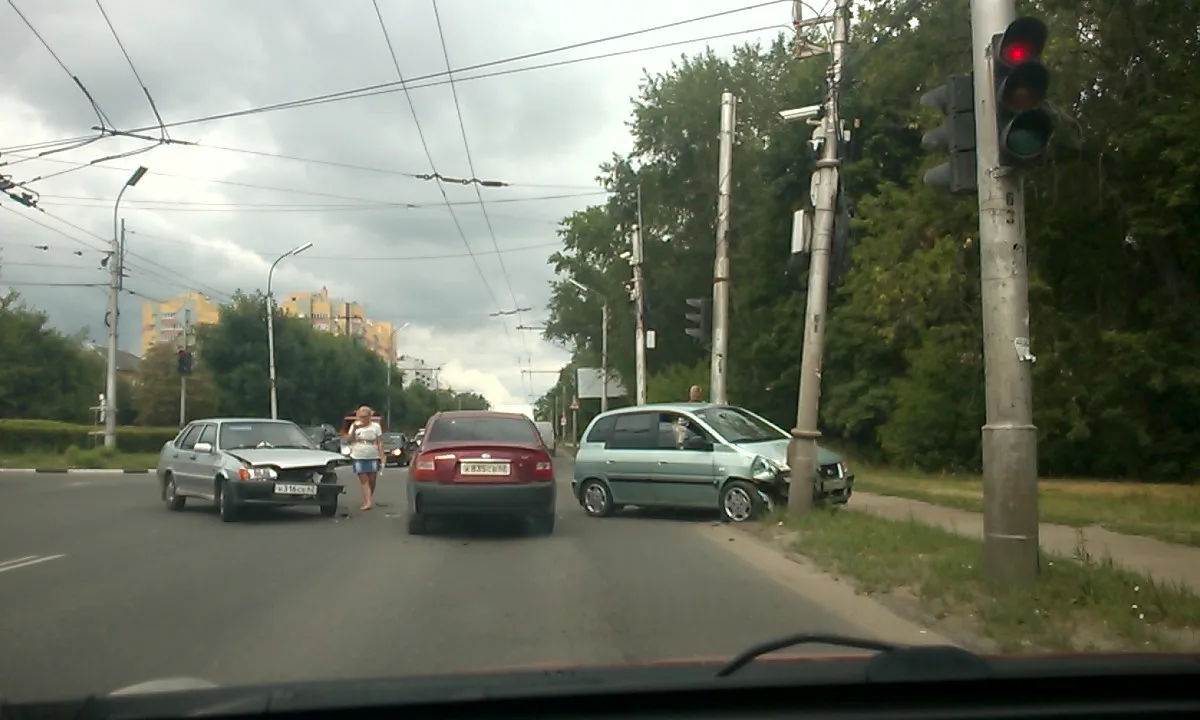В Рязани на перекрёстке улицы Новая и Касимовскго шоссе произошло ДТП: стокнулись "Хёндэ Матрикс" и ВАЗ-2115. Фотографии с места ДТП прислал очевидец.