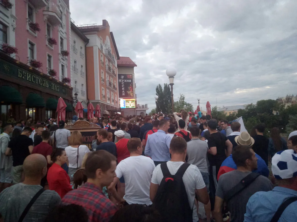 Абсолютно не ожидали, что станем центральной площадкой для фанатов в городе. Изначально экран ставили просто для посетителей ресторана - понимали, что проезжих туристов, которые приехали на Чемпионат мира будет много. То, что возле этого экрана будут собираться тысячи фанатов, мы, честно говоря, не ожидали, - сотрудник ресторана «Бристоль».