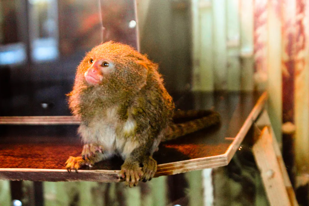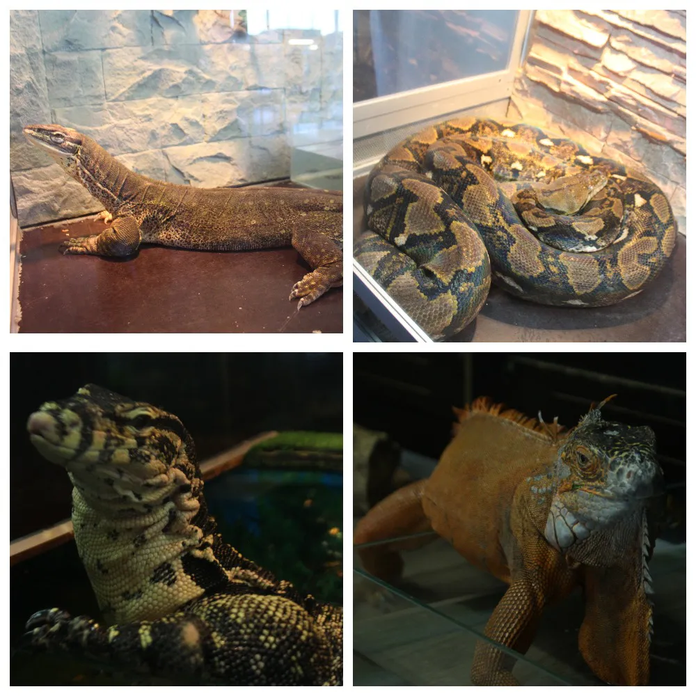 Помимо приматов, есть еще и рептилии: змеи, игуаны и даже огромный крокодил.