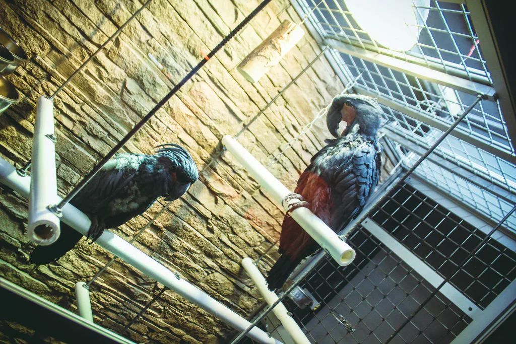 У нас огромная коллекция приматов, пернатых и рептилий. Есть очень редкие экземпляры например, чёрный какаду. Его огромный мощный клюв способен проломить даже кокос. Эту птичку лучше не злить.